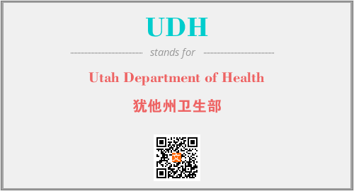 上述内容是“Utah Department of Health”作为“UDH”的缩写,解释为“犹他州卫生部”时的信息,以及英文缩略词UDH所代表的英文单词,其对应的中文拼音、详细解释以及在英文中的流行度和相关分类、应用领域及应用示例等。
