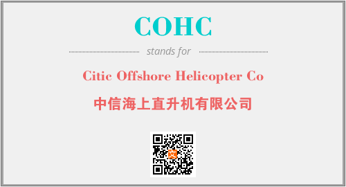 上述内容是“Citic Offshore Helicopter Co”作为“COHC”的缩写,解释为“中信海上直升机有限公司”时的信息,以及英文缩略词COHC所代表的英文单词,其对应的中文拼音、详细解释以及在英文中的流行度和相关分类、应用领域及应用示例等。