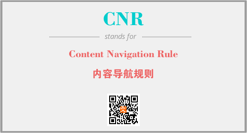 上述内容是“Content Navigation Rule”作为“CNR”的缩写,解释为“内容导航规则”时的信息,以及英文缩略词CNR所代表的英文单词,其对应的中文拼音、详细解释以及在英文中的流行度和相关分类、应用领域及应用示例等。