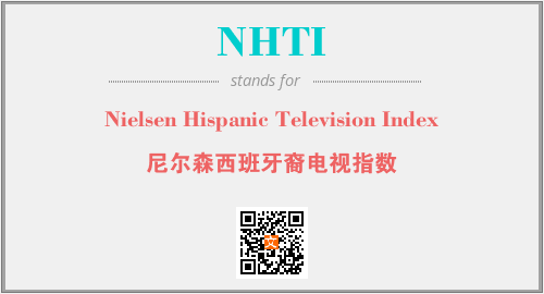 上述内容是“Nielsen Hispanic Television Index”作为“NHTI”的缩写,解释为“尼尔森西班牙裔电视指数”时的信息,以及英文缩略词NHTI所代表的英文单词,其对应的中文拼音、详细解释以及在英文中的流行度和相关分类、应用领域及应用示例等。