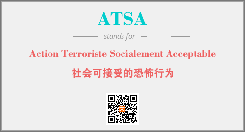 以上为Action Terroriste Socialement Acceptable英文缩略词ATSA的中文解释,以及该英文缩写在英语的流行度、分类和应用领域方面的信息。