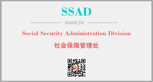 上述内容是“Social Security Administration Division”作为“SSAD”的缩写,解释为“社会保障管理处”时的信息,以及英文缩略词SSAD所代表的英文单词,其对应的中文拼音、详细解释以及在英文中的流行度和相关分类、应用领域及应用示例等。