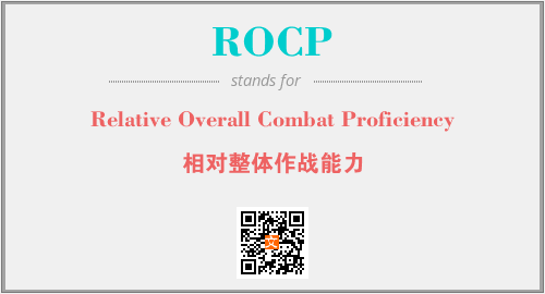 上述内容是“Relative Overall Combat Proficiency”作为“ROCP”的缩写,解释为“相对整体作战能力”时的信息,以及英文缩略词ROCP所代表的英文单词,其对应的中文拼音、详细解释以及在英文中的流行度和相关分类、应用领域及应用示例等。