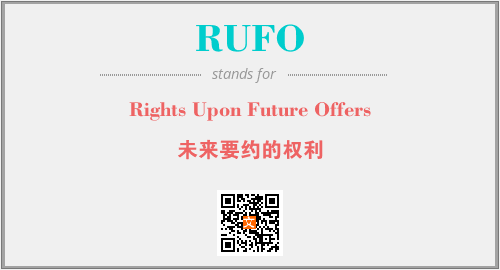 上述内容是“Rights Upon Future Offers”作为“RUFO”的缩写,解释为“未来要约的权利”时的信息,以及英文缩略词RUFO所代表的英文单词,其对应的中文拼音、详细解释以及在英文中的流行度和相关分类、应用领域及应用示例等。