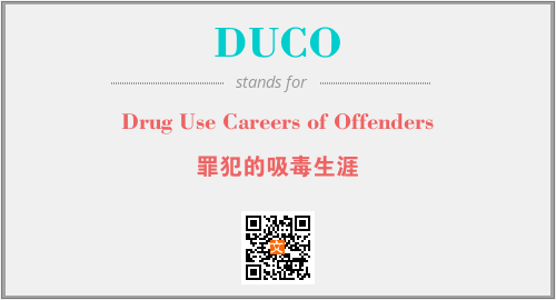 上述内容是“Drug Use Careers of Offenders”作为“DUCO”的缩写,解释为“罪犯的吸毒生涯”时的信息,以及英文缩略词DUCO所代表的英文单词,其对应的中文拼音、详细解释以及在英文中的流行度和相关分类、应用领域及应用示例等。