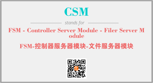 上述内容是“FSM - Controller Server Module - Filer Server Module”作为“CSM”的缩写,解释为“FSM-控制器服务器模块-文件服务器模块”时的信息,以及英文缩略词CSM所代表的英文单词,其对应的中文拼音、详细解释以及在英文中的流行度和相关分类、应用领域及应用示例等。