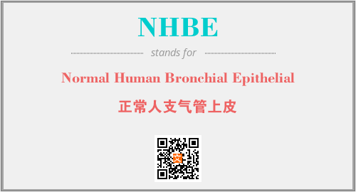 上述内容是“Normal Human Bronchial Epithelial”作为“NHBE”的缩写,解释为“正常人支气管上皮”时的信息,以及英文缩略词NHBE所代表的英文单词,其对应的中文拼音、详细解释以及在英文中的流行度和相关分类、应用领域及应用示例等。