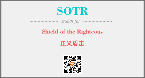 英文缩略词“SOTR”经常作为“Shield of the Righteous”的英文缩写来使用,中文表示:“正义盾击”。本文将详细介绍英文缩写词SOTR所代表英文单词,其对应的中文拼音、详细解释以及在英语中的流行度。此外,还有关于缩略词SOTR的分类、应用领域及相关应用示例等。