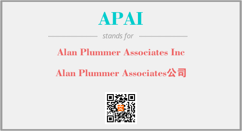 上述内容是“Alan Plummer Associates Inc”作为“APAI”的缩写,解释为“Alan Plummer Associates公司”时的信息,以及英文缩略词APAI所代表的英文单词,其对应的中文拼音、详细解释以及在英文中的流行度和相关分类、应用领域及应用示例等。