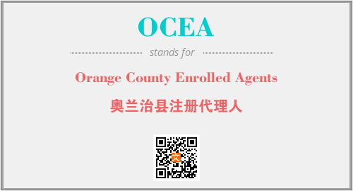 上述内容是“Orange County Enrolled Agents”作为“OCEA”的缩写,解释为“奥兰治县注册代理人”时的信息,以及英文缩略词OCEA所代表的英文单词,其对应的中文拼音、详细解释以及在英文中的流行度和相关分类、应用领域及应用示例等。