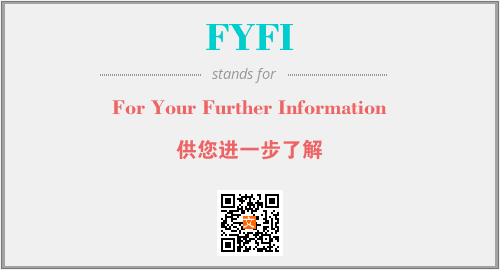 上述内容是“For Your Further Information”作为“FYFI”的缩写,解释为“供您进一步了解”时的信息,以及英文缩略词FYFI所代表的英文单词,其对应的中文拼音、详细解释以及在英文中的流行度和相关分类、应用领域及应用示例等。
