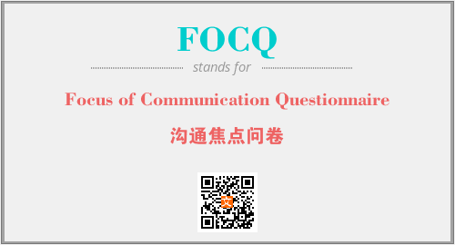上述内容是“Focus of Communication Questionnaire”作为“FOCQ”的缩写,解释为“沟通焦点问卷”时的信息,以及英文缩略词FOCQ所代表的英文单词,其对应的中文拼音、详细解释以及在英文中的流行度和相关分类、应用领域及应用示例等。