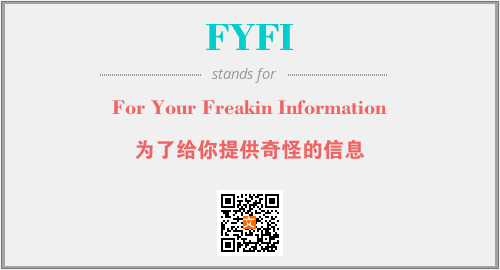 上述内容是“For Your Freakin Information”作为“FYFI”的缩写,解释为“为了给你提供奇怪的信息”时的信息,以及英文缩略词FYFI所代表的英文单词,其对应的中文拼音、详细解释以及在英文中的流行度和相关分类、应用领域及应用示例等。