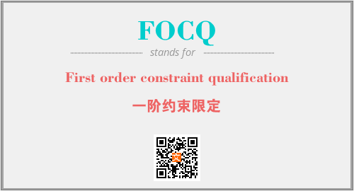 上述内容是“First order constraint qualification”作为“FOCQ”的缩写,解释为“一阶约束限定”时的信息,以及英文缩略词FOCQ所代表的英文单词,其对应的中文拼音、详细解释以及在英文中的流行度和相关分类、应用领域及应用示例等。