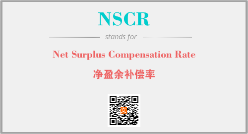上述内容是“Net Surplus Compensation Rate”作为“NSCR”的缩写,解释为“净盈余补偿率”时的信息,以及英文缩略词NSCR所代表的英文单词,其对应的中文拼音、详细解释以及在英文中的流行度和相关分类、应用领域及应用示例等。
