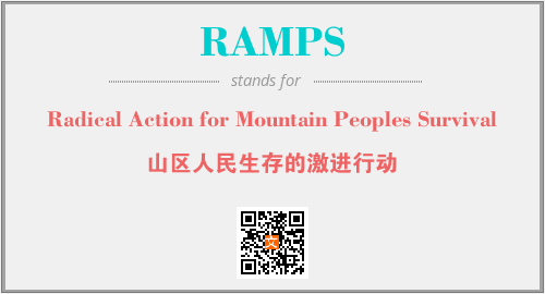 上述内容是“Radical Action for Mountain Peoples Survival”作为“RAMPS”的缩写,解释为“山区人民生存的激进行动”时的信息,以及英文缩略词RAMPS所代表的英文单词,其对应的中文拼音、详细解释以及在英文中的流行度和相关分类、应用领域及应用示例等。