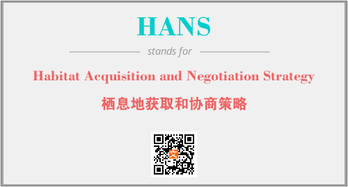 以上为Habitat Acquisition and Negotiation Strategy英文缩略词HANS的中文解释,以及该英文缩写在英语的流行度、分类和应用领域方面的信息。