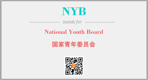 上述内容是“National Youth Board”作为“NYB”的缩写,解释为“国家青年委员会”时的信息,以及英文缩略词NYB所代表的英文单词,其对应的中文拼音、详细解释以及在英文中的流行度和相关分类、应用领域及应用示例等。