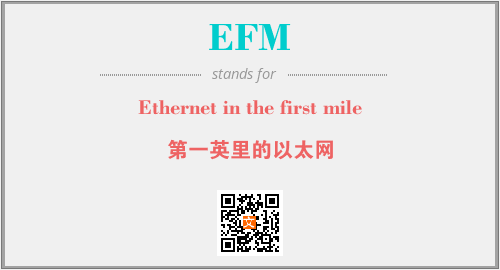 英文缩略词“EFM”经常作为“Ethernet in the first mile”的英文缩写来使用,中文表示:“第一英里的以太网”。本文将详细介绍英文缩写词EFM所代表英文单词,其对应的中文拼音、详细解释以及在英语中的流行度。此外,还有关于缩略词EFM的分类、应用领域及相关应用示例等。