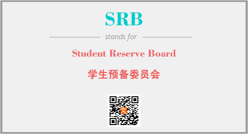 英文缩略词“SRB”经常作为“Student Reserve Board”的英文缩写来使用,中文表示:“学生预备委员会”。本文将详细介绍英文缩写词SRB所代表英文单词,其对应的中文拼音、详细解释以及在英语中的流行度。此外,还有关于缩略词SRB的分类、应用领域及相关应用示例等。