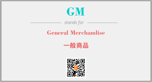 英文缩略词“GM”经常作为“General Merchandise”的英文缩写来使用,中文表示:“一般商品”。本文将详细介绍英文缩写词GM所代表英文单词,其对应的中文拼音、详细解释以及在英语中的流行度。此外,还有关于缩略词GM的分类、应用领域及相关应用示例等。