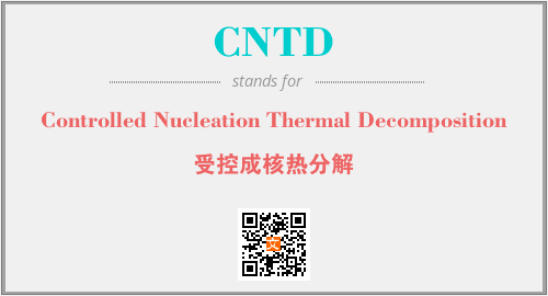 上述内容是“Controlled Nucleation Thermal Decomposition”作为“CNTD”的缩写,解释为“受控成核热分解”时的信息,以及英文缩略词CNTD所代表的英文单词,其对应的中文拼音、详细解释以及在英文中的流行度和相关分类、应用领域及应用示例等。