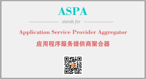 英文缩略词“ASPA”经常作为“Application Service Provider Aggregator”的英文缩写来使用,中文表示:“应用程序服务提供商聚合器”。本文将详细介绍英文缩写词ASPA所代表英文单词,其对应的中文拼音、详细解释以及在英语中的流行度。此外,还有关于缩略词ASPA的分类、应用领域及相关应用示例等。
