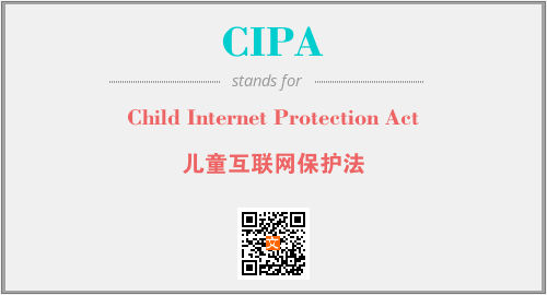 上述内容是“Child Internet Protection Act”作为“CIPA”的缩写,解释为“儿童互联网保护法”时的信息,以及英文缩略词CIPA所代表的英文单词,其对应的中文拼音、详细解释以及在英文中的流行度和相关分类、应用领域及应用示例等。