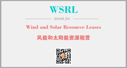 上述内容是“Wind and Solar Resource Leases”作为“WSRL”的缩写,解释为“风能和太阳能资源租赁”时的信息,以及英文缩略词WSRL所代表的英文单词,其对应的中文拼音、详细解释以及在英文中的流行度和相关分类、应用领域及应用示例等。