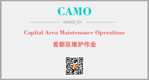 上述内容是“Capital Area Maintenance Operations”作为“CAMO”的缩写,解释为“首都区维护作业”时的信息,以及英文缩略词CAMO所代表的英文单词,其对应的中文拼音、详细解释以及在英文中的流行度和相关分类、应用领域及应用示例等。