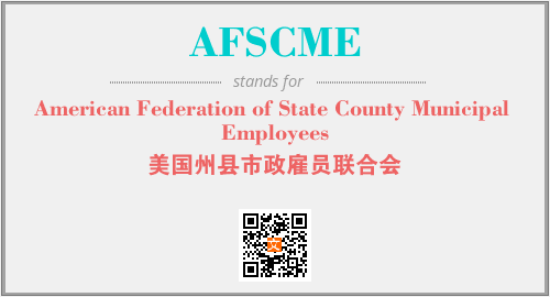 上述内容是“American Federation of State County Municipal Employees”作为“AFSCME”的缩写,解释为“美国州县市政雇员联合会”时的信息,以及英文缩略词AFSCME所代表的英文单词,其对应的中文拼音、详细解释以及在英文中的流行度和相关分类、应用领域及应用示例等。