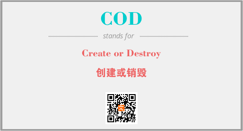 英文缩略词“COD”经常作为“Create or Destroy”的英文缩写来使用,中文表示:“创建或销毁”。本文将详细介绍英文缩写词COD所代表英文单词,其对应的中文拼音、详细解释以及在英语中的流行度。此外,还有关于缩略词COD的分类、应用领域及相关应用示例等。