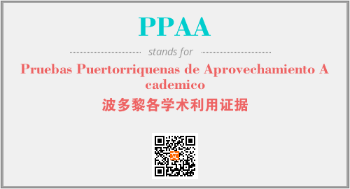 上述内容是“Pruebas Puertorriquenas de Aprovechamiento Academico”作为“PPAA”的缩写,解释为“波多黎各学术利用证据”时的信息,以及英文缩略词PPAA所代表的英文单词,其对应的中文拼音、详细解释以及在英文中的流行度和相关分类、应用领域及应用示例等。