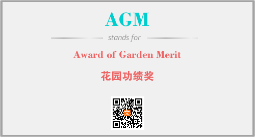 英文缩略词“AGM”经常作为“Award of Garden Merit”的英文缩写来使用,中文表示:“花园功绩奖”。本文将详细介绍英文缩写词AGM所代表英文单词,其对应的中文拼音、详细解释以及在英语中的流行度。此外,还有关于缩略词AGM的分类、应用领域及相关应用示例等。