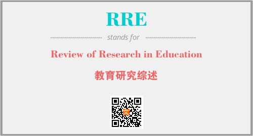 上述内容是“Review of Research in Education”作为“RRE”的缩写,解释为“教育研究综述”时的信息,以及英文缩略词RRE所代表的英文单词,其对应的中文拼音、详细解释以及在英文中的流行度和相关分类、应用领域及应用示例等。