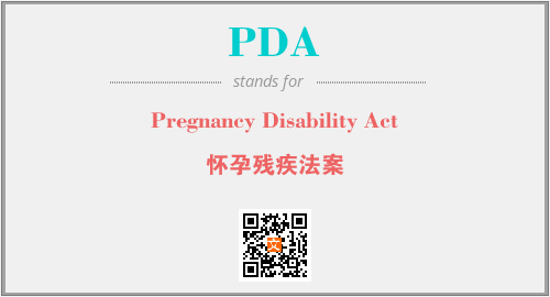 上述内容是“Pregnancy Disability Act”作为“PDA”的缩写,解释为“怀孕残疾法案”时的信息,以及英文缩略词PDA所代表的英文单词,其对应的中文拼音、详细解释以及在英文中的流行度和相关分类、应用领域及应用示例等。