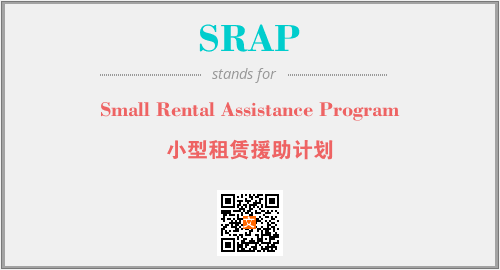上述内容是“Small Rental Assistance Program”作为“SRAP”的缩写,解释为“小型租赁援助计划”时的信息,以及英文缩略词SRAP所代表的英文单词,其对应的中文拼音、详细解释以及在英文中的流行度和相关分类、应用领域及应用示例等。