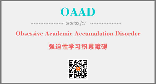 上述内容是“Obsessive Academic Accumulation Disorder”作为“OAAD”的缩写,解释为“强迫性学习积累障碍”时的信息,以及英文缩略词OAAD所代表的英文单词,其对应的中文拼音、详细解释以及在英文中的流行度和相关分类、应用领域及应用示例等。