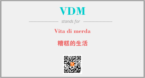 上述内容是“Vita di merda”作为“VDM”的缩写,解释为“糟糕的生活”时的信息,以及英文缩略词VDM所代表的英文单词,其对应的中文拼音、详细解释以及在英文中的流行度和相关分类、应用领域及应用示例等。
