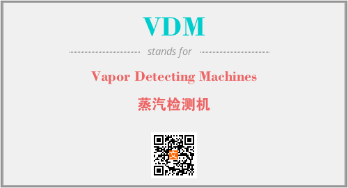 英文缩略词“VDM”经常作为“Vapor Detecting Machines”的英文缩写来使用,中文表示:“蒸汽检测机”。本文将详细介绍英文缩写词VDM所代表英文单词,其对应的中文拼音、详细解释以及在英语中的流行度。此外,还有关于缩略词VDM的分类、应用领域及相关应用示例等。