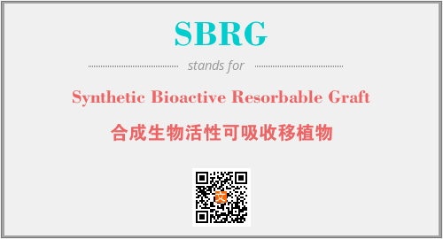 上述内容是“Synthetic Bioactive Resorbable Graft”作为“SBRG”的缩写,解释为“合成生物活性可吸收移植物”时的信息,以及英文缩略词SBRG所代表的英文单词,其对应的中文拼音、详细解释以及在英文中的流行度和相关分类、应用领域及应用示例等。