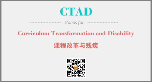英文缩略词“CTAD”经常作为“Curriculum Transformation and Disability”的英文缩写来使用,中文表示:“课程改革与残疾”。本文将详细介绍英文缩写词CTAD所代表英文单词,其对应的中文拼音、详细解释以及在英语中的流行度。此外,还有关于缩略词CTAD的分类、应用领域及相关应用示例等。