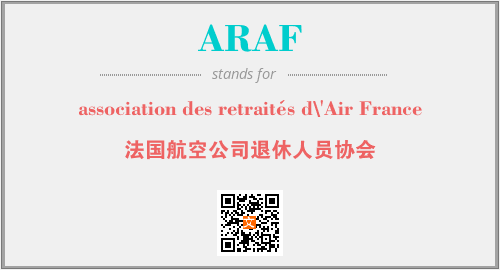 上述内容是“association des retraités d\'Air France”作为“ARAF”的缩写,解释为“法国航空公司退休人员协会”时的信息,以及英文缩略词ARAF所代表的英文单词,其对应的中文拼音、详细解释以及在英文中的流行度和相关分类、应用领域及应用示例等。