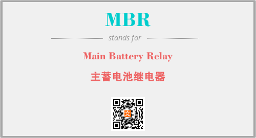 英文缩略词“MBR”经常作为“Main Battery Relay”的英文缩写来使用,中文表示:“主蓄电池继电器”。本文将详细介绍英文缩写词MBR所代表英文单词,其对应的中文拼音、详细解释以及在英语中的流行度。此外,还有关于缩略词MBR的分类、应用领域及相关应用示例等。