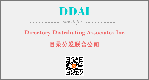 英文缩略词“DDAI”经常作为“Directory Distributing Associates Inc”的英文缩写来使用,中文表示:“目录分发联合公司”。本文将详细介绍英文缩写词DDAI所代表英文单词,其对应的中文拼音、详细解释以及在英语中的流行度。此外,还有关于缩略词DDAI的分类、应用领域及相关应用示例等。