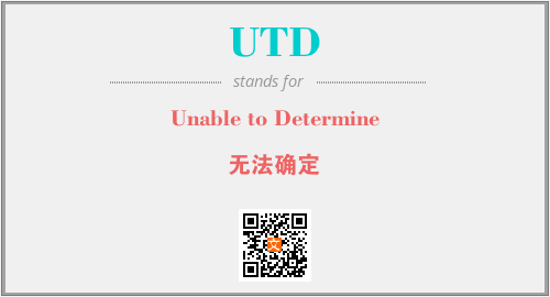 英文缩略词“UTD”经常作为“Unable to Determine”的英文缩写来使用,中文表示:“无法确定”。本文将详细介绍英文缩写词UTD所代表英文单词,其对应的中文拼音、详细解释以及在英语中的流行度。此外,还有关于缩略词UTD的分类、应用领域及相关应用示例等。
