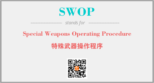 英文缩略词“SWOP”经常作为“Special Weapons Operating Procedure”的英文缩写来使用,中文表示:“特殊武器操作程序”。本文将详细介绍英文缩写词SWOP所代表英文单词,其对应的中文拼音、详细解释以及在英语中的流行度。此外,还有关于缩略词SWOP的分类、应用领域及相关应用示例等。
