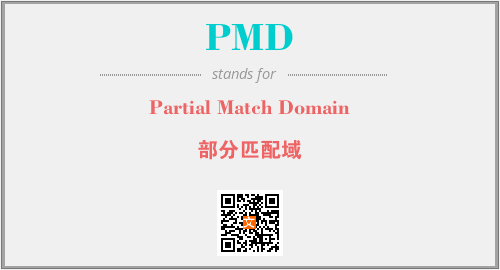 上述内容是“Partial Match Domain”作为“PMD”的缩写,解释为“部分匹配域”时的信息,以及英文缩略词PMD所代表的英文单词,其对应的中文拼音、详细解释以及在英文中的流行度和相关分类、应用领域及应用示例等。