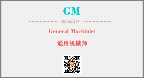 英文缩略词“GM”经常作为“General Machinist”的英文缩写来使用,中文表示:“通用机械师”。本文将详细介绍英文缩写词GM所代表英文单词,其对应的中文拼音、详细解释以及在英语中的流行度。此外,还有关于缩略词GM的分类、应用领域及相关应用示例等。