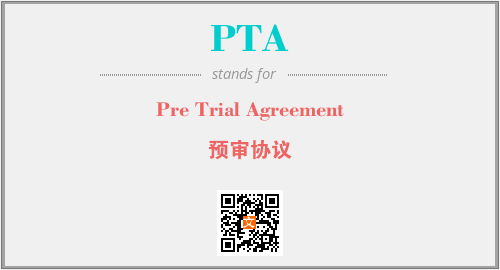 英文缩略词“PTA”经常作为“Pre Trial Agreement”的英文缩写来使用,中文表示:“预审协议”。本文将详细介绍英文缩写词PTA所代表英文单词,其对应的中文拼音、详细解释以及在英语中的流行度。此外,还有关于缩略词PTA的分类、应用领域及相关应用示例等。